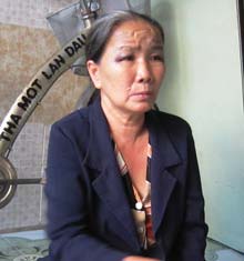 ![]() Bà Nguyễn Thị Minh Thu mặt mày thâm tím, đang trình bày vụ việc với phóng viên. |