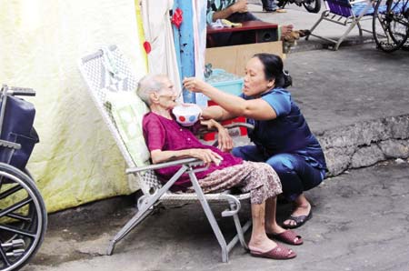 ![]() Cụ Nguyễn Thị Chung được người dân chăm sóc trong thời gian phải ra vỉa hè ở. |