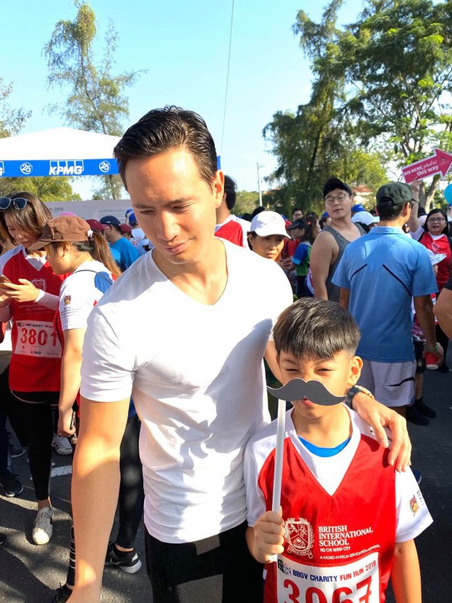 Trong khi hai cha con Cường Đô La rất vui vẻ chạy cùng nhau thì Kim Lý cũng khá quan tâm và chăm sóc cho Subeo trong suốt sự kiện.
