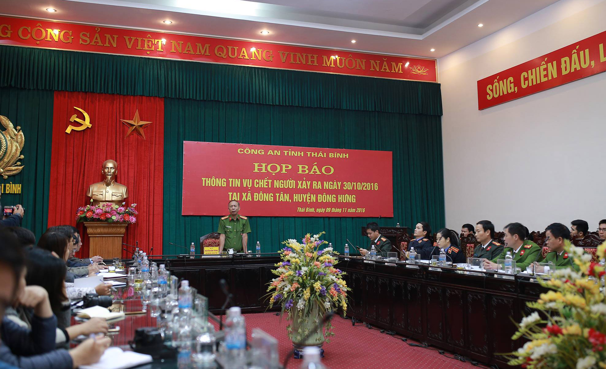 Công an tỉnh Thái Bình họp báo thông tin kết luận vụ người mẹ chở con trên xe SH bị đâm tử vong. Ảnh: ĐB