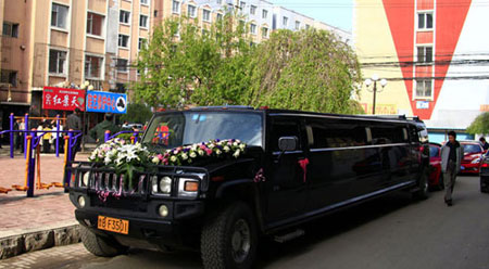 Trước đó, một đám cưới của một đại gia ở tỉnh Cát Lâm, Trung Quốc vào 22/5 vừa qua khiến người dân ở đây được dịp ’rửa mắt’. Ngoài những chiếc xe sang đi sau hộ tống, đoàn rước thêm phần hoành tráng khi có sự xuất hiện của một chiếc Hummer khủng dài 10m.