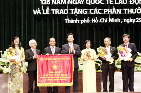![]() Thủ tướng Nguyễn Tấn Dũng trao Cờ thi đua của Chính phủ tặng TP Hồ Chí Minh. Ảnh: TTX |