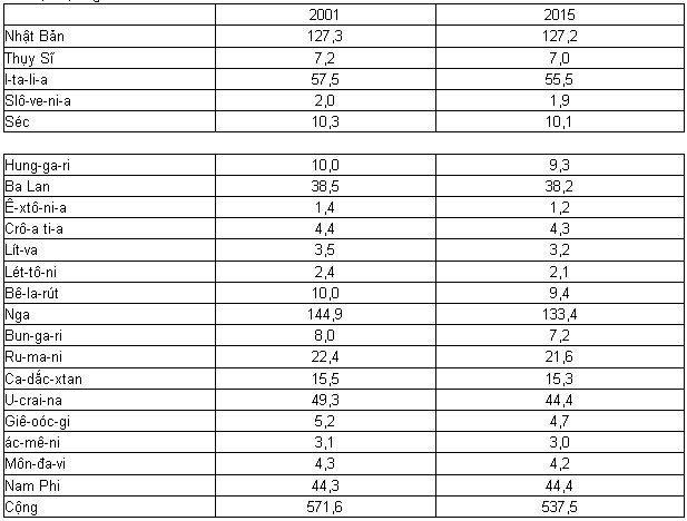 Dẫu sao điều chắc chắn là trong mọi trường hợp, sự diễn biến này sẽ dẫn đến giảm dân số ở một số nước từ nay cho đến năm 2015, như thể hiện ở các bảng sau :