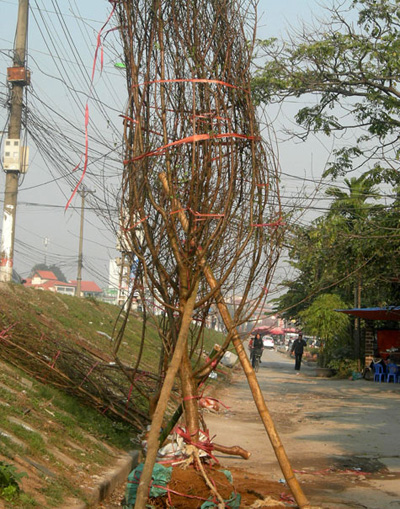 Nguyên cây đào rừng trước khi được các thương lái tân trang. |