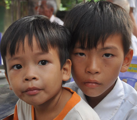 Hai đứa con của anh Thu, chị Hoản giờ thành trẻ mồ côi. Ảnh: T.Q |