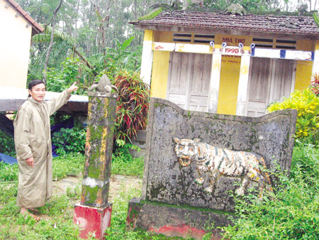 Ông Năm Long cho biết, ông đã từng chứng kiến dấu chân cọp bấu, xé toạc vỏ cây bí bái sau khi dân làng bỏ lễ cho "ông cọp" mỗi khi cúng giỗ. Ông Năm Long kể rằng, lúc nhỏ, ông từng gặp cọp nhiều lần khi đi theo cậu ruột là Trần Lại. Có lần đi rừng, con chó cùng đi bị 'ông cọp" ăn mất, Trần Lại bực mình nói: "Ăn thì ăn quần vợ tao chứ ăn gì con chó của tao". Nói thế "ông cọp" nghe thế nào mà đêm đến "ông" ngồi ở trong khe cạnh nhà nơi có phơi dãy áo quần. Thấy thế, Trần Lại khiếp vía, một mạch chạy vào làng trong. Sáng hôm sau khi người làng trở lại thì căn nhà tranh bị "ông cọp" quậy cho toanh toe. Từ đó Trần Lại không về ở nhà đó ở nữa...