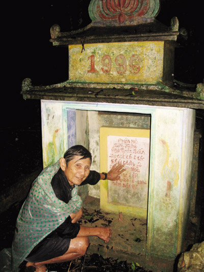 Ông Ba Đây trước ngôi mộ của Trần Bình, người thắng trận "ông cọp" năm nào. |