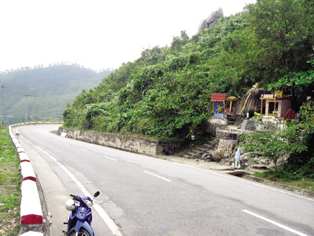 Trên đèo Hải Vân, đoạn km 908 QL1A, nơi đây là miếu thờ "ông cọp" nên các bác tài qua lại thường thắp hương để cầu an. |