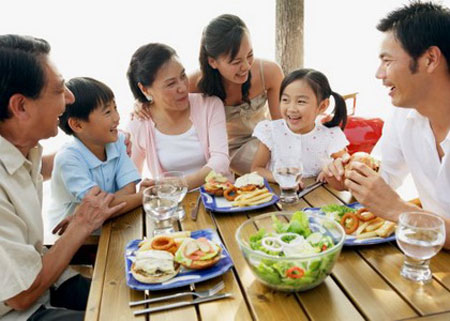 Hãy nói chuyện, vui vẻ khi ăn nhưng cũng phải chú ý đến cách cư xử. Những dịp chỉ hai vợ chồng và đứa con cùng đi ăn nhà hàng chính là cơ hội để bạn dạy cho các con các quy tắc như không nhai to, không nói chuyện với cái mồm đầy thức ăn, không chế nhạo món ăn, không nhận xét thô lỗ về cách nấu nướng, không ngồi xổm, không tranh cãi và không chơi trò chơi trong khi ăn…