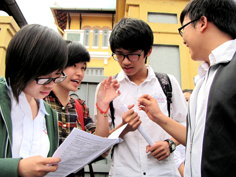 ![]() Các thí sinh bàn tán sôi nổi về đề thi sau khi kết thúc môn Hóa sáng nay. Ảnh: Hải Duyên. |