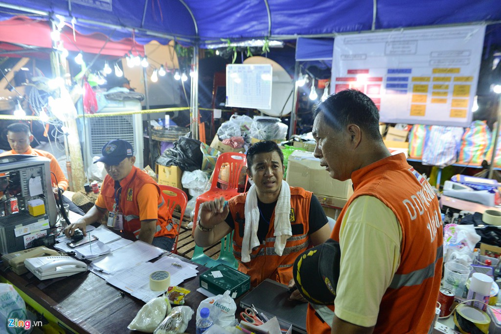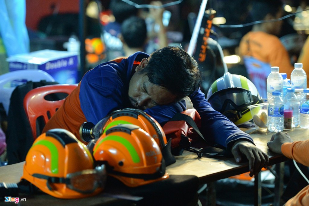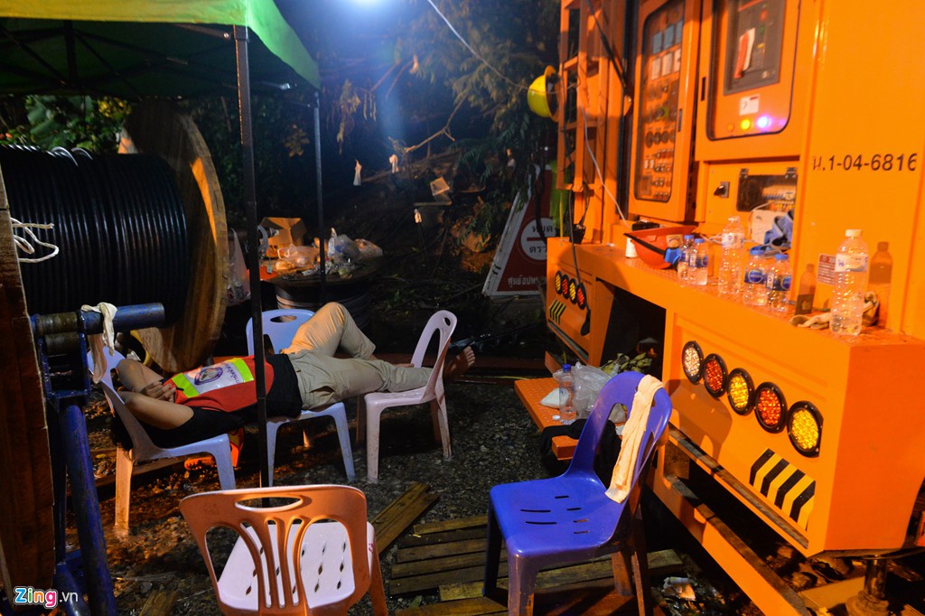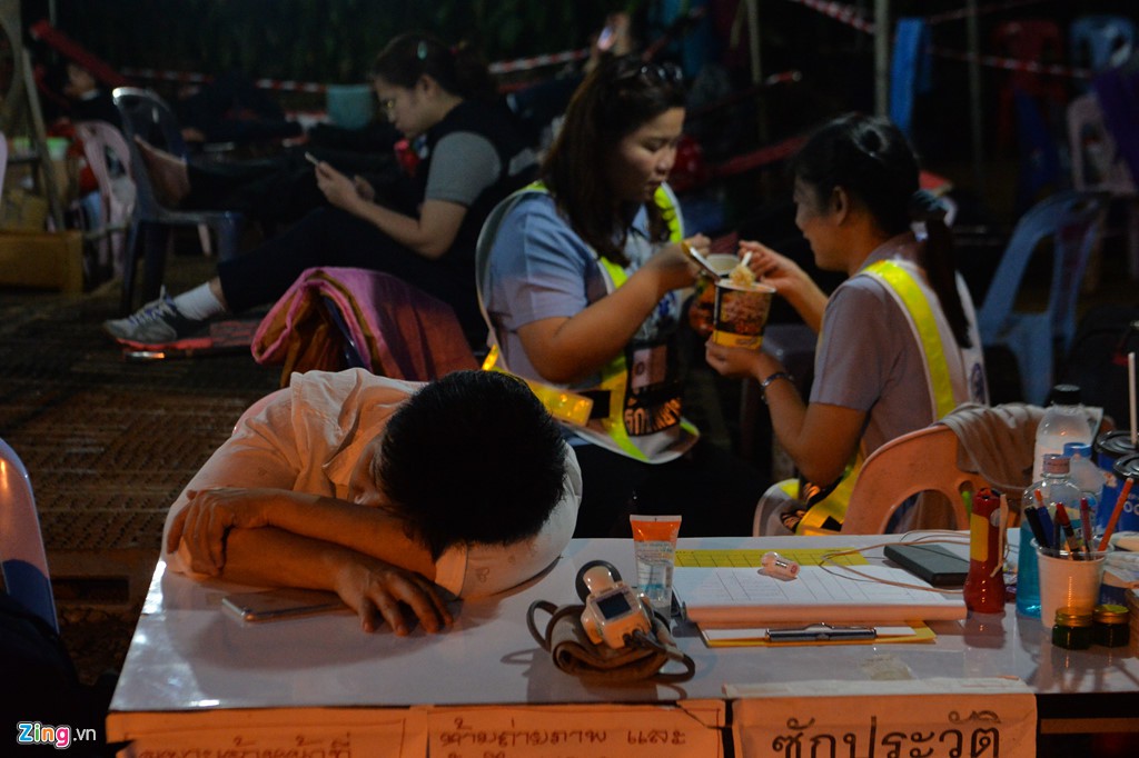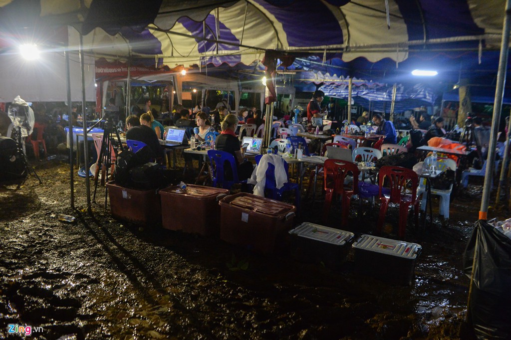 Phóng viên Zing.vn có mặt tại hiện trường vụ giải cứu đội bóng Thái Lan ghi nhận không khí làm việc ngày đêm khẩn trương của nhóm cứu hộ, các tình nguyện viên và giới báo chí.