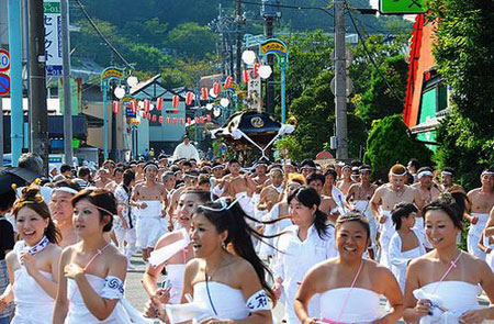 Người dân Nhật Bản tin rằng người đàn ông duy nhất khỏa thân trong lễ hội này sẽ là người lấy đi hết những điều xấu xa và những hành động tội lỗi của họ. Vì vậy mà ai cũng muốn được chạm vào người đàn ông này để có thể truyền đi hết những điều không may cho mình.