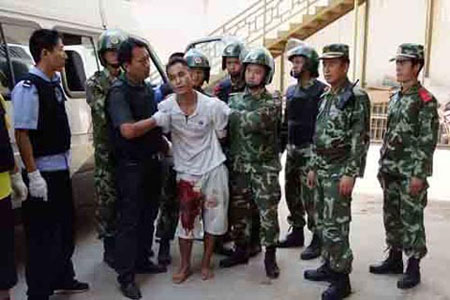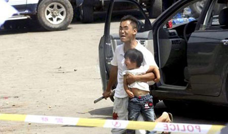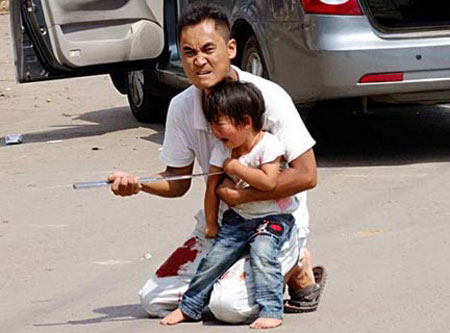 Dí kiếm vào cổ con để uy hiếp cảnh sát