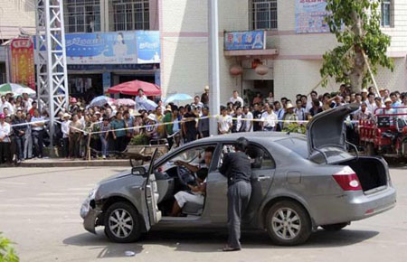 "Người lái xe điên" bắt đầu đối đầu với cảnh sát bằng cách dùng một thanh kiếm dọa giết đứa con mới lên 3 của mình.