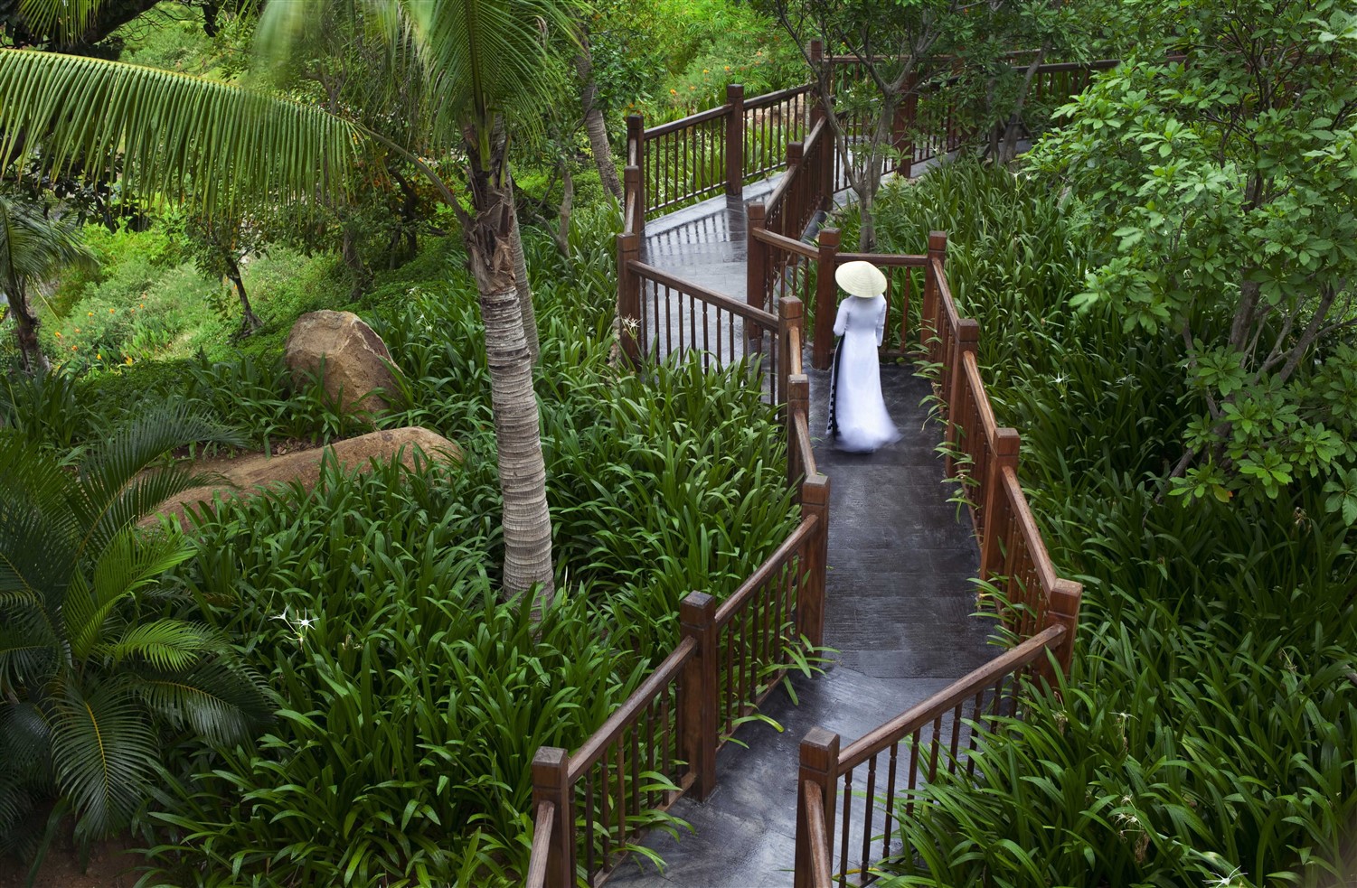 Chính những quy chuẩn khắt khe trong việc bảo tồn rừng và hệ sinh thái nơi đây trong suốt quá trình xây dựng đã giúp khu nghỉ dưỡng được bao bọc tuyệt đối bởi thiên nhiên. Một cây cầu thang gỗ liên tục được gấp khúc, để nhường lối cho cây rừng mọc tự nhiên. Những chú khỉ tinh nghịch trong vòm lá, hé mắt nhìn du khách đi tàu điện Nam Tram xuống lối ra biển… Thiên nhiên làm bạn với con người, thân thiện đến dễ chịu.