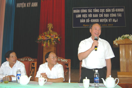 Phó Tổng cục trưởng cũng đề nghị UBND tỉnh, Ban chỉ đạo công tác DS-KHHGĐ tỉnh Hà Tĩnh kiên quyết chỉ đạo, thảo luận đưa ra những giải pháp phù hợp với thực tế địa phương để đảm bảo thực hiện được các chỉ tiêu của năm 2012, đặc biệt là chỉ tiêu giảm sinh; giải quyết các vướng mắc trong công tác tổ chức bộ máy; trong hoạch định kế hoạch cần quan tâm tới những vấn đề kinh tế - xã hội đang diễn ra ở địa phương: mức sinh tăng và tốc độ già hóa cũng nhanh, ở mức cao so với cả nước, vấn đề lao động địa phương đi làm ăn xa và lao động nhập cư đang tăng lên, nâng cao chất lượng sống, chất lượng nguồn nhân lực...