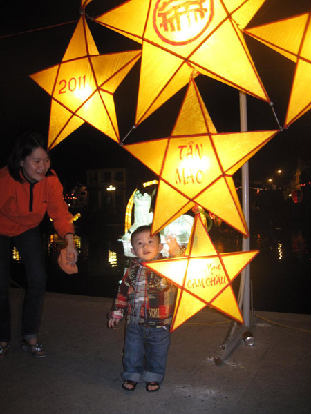 Đèn tạo hình phố cổ soi mình bên sông Hoài |