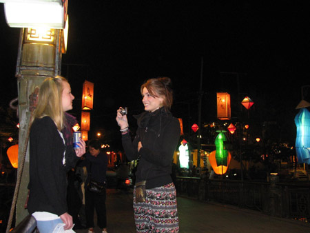 Người dân và du khách thích thú với lễ hội đèn lồng. |