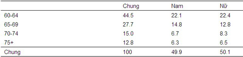 Bảng 2. Lực lượng lao động người cao tuổi chia theo giới tính và nhóm tuổi, 2009 (%)