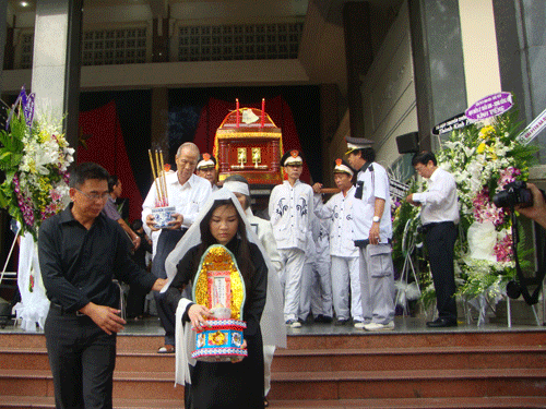 Đông đảo nghệ sĩ và khán giả mộ điệu đã đến tiễn đưa đạo diễn Lê Hoàng Hoa về nơi an nghỉ cuối cùng sáng 3/8.