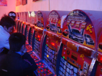 Có gần 50 chiếc máy xèng (một hình thức đánh bạc khác) được đặt khắp các bức tường. Khách hàng chủ yếu là những học sinh nhỏ tuổi. |