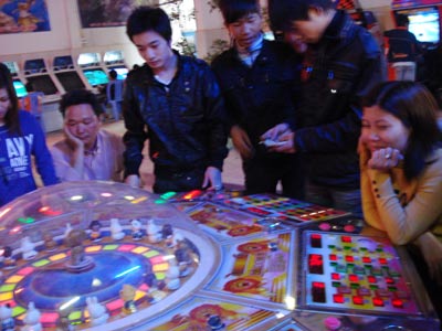 Những thượng đế tại "khu vui chơi giải trí" này có đủ cả nam lẫn nữ. Họ đưa tiền cho những người trực máy, sau đó họ sẽ bơm vào máy số điểm tương ứng. Tiếp đến là trò chơi đen đỏ. |