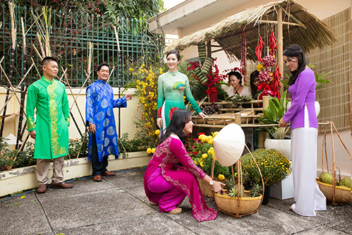 Cạnh đó là những gánh hàng Tết để mọi người có thể tạo dáng chụp ảnh