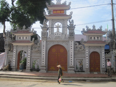 Cổng chính vào chùa đã được làm mới. Ảnh: N.Hưng |
