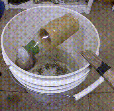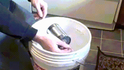 Theo cách bẫy này, chuột sẽ mò đến ăn bơ lạc rồi trèo lên lon sắt quay và bị rơi xuống thùng nước rồi chết đuối.
