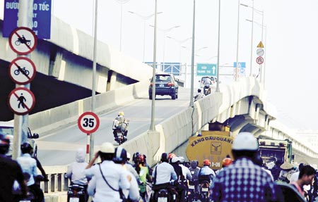 Trong buổi sáng làm lễ thông xe (21/10), mỗi đầu đường dẫn lên, xuống cầu đều có ít nhất 2 CSGT hoặc Thanh tra giao thông ứng trực, nên không một phương tiện nào dám lao lên cầu. Sau khi khu vực lễ đài được dọn dẹp, vào buổi chiều cùng ngày, đường trên cao mới bắt đầu hòa mình vào giao thông Thủ đô. Nhưng từ sáng 22 đến 23/10, bóng dáng “áo vàng, áo xanh” hầu như không xuất hiện tại các nút giao nữa. Kết quả là, người điều khiển xe máy, người đi bộ…sẵn sàng “liều mạng” lao lên cầu cạn để được “trải nghiệm” cao tốc trên cao đầu tiên của Việt Nam. Từ ngã tư Khuất Duy Tiến – Nguyễn Trãi đến nút giao với Đại lộ Thăng Long, CSGT chủ yếu làm việc ở các ngã tư đèn đỏ đường dưới, thay vì gác ở đầu đường dẫn.