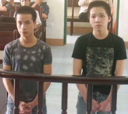 2 bị cáo Ninh và Thanh tại phiên tòa. |