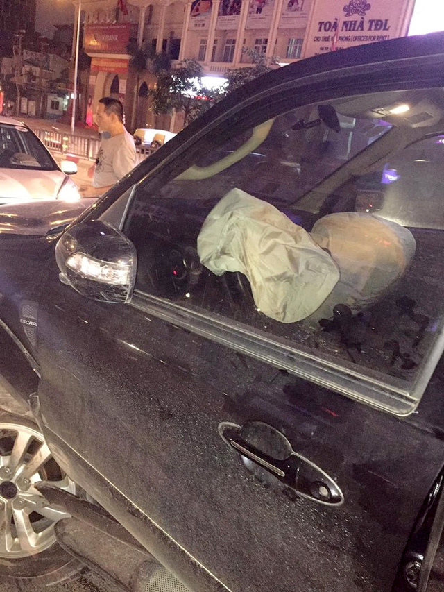 Tại hiện trường cả 4 phương tiện đều hư hỏng, nhiều mảnh nhựa vương vãi ra đường. Túi khí của Ford Escape bung khi tai nạn xảy ra. Ảnh: Trường Hiếu.