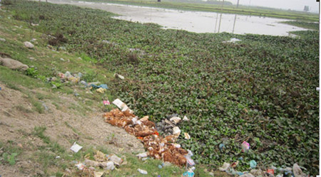 Gà chết dịch được một số người chăn nuôi thiếu ý thức vứt hàng đống bên vệ nước sông Thái chảy qua huyện Quỳnh Lưu. |