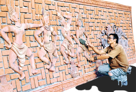Nguyễn Ngọc Tuấn bên tác phẩm Vũ nữ Chăm. Ảnh: PV |