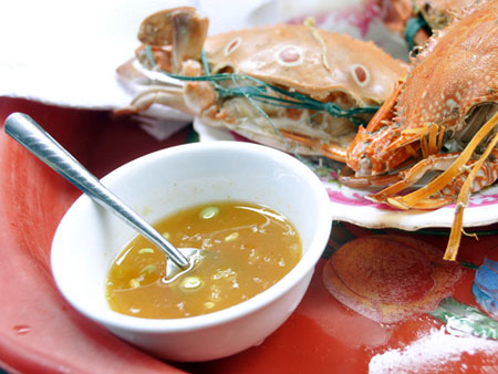 Nước chấm ở đây pha rất thơm mà vừa miệng. |