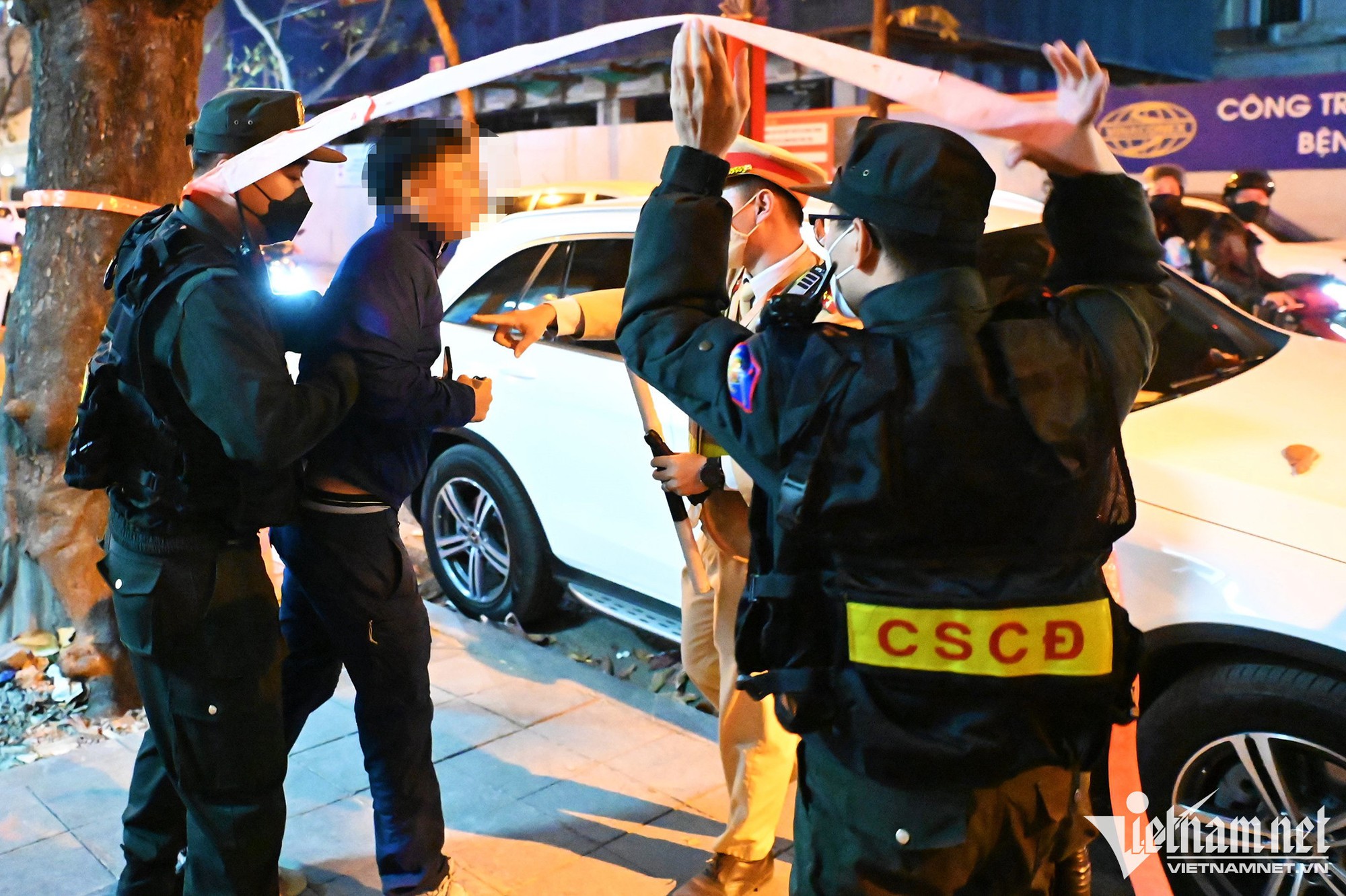 Lực lượng Cảnh sát 141 (Công an TP Hà Nội) khống chế đối tượng chống đối tại chốt kiểm tra.