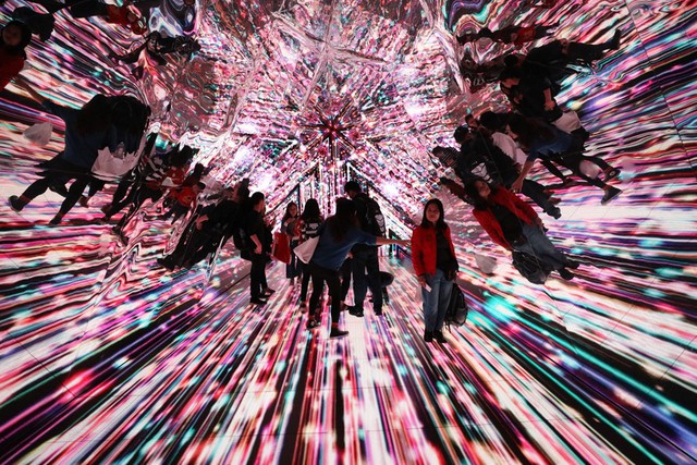 Du khách tới tham quan địa điểm trang trí đèn Giáng sinh trong nhà ở Thành phố Cảng, Tsim Sha Tsui, Hong Kong. Ảnh: SCMP.