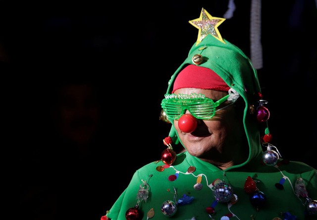 Một người đàn ông hóa trang thành cây thông Noel tại một khu chợ ở Monterrey, Mexico. Ảnh: Reuters.