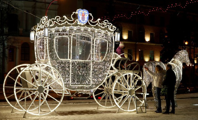Cỗ xe ngựa rực rỡ mừng Giáng sinh và năm mới ở Minsk, Belarus. Ảnh: Reuters.