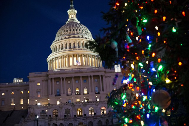 Cây thông Noel trước tòa nhà quốc hội Mỹ ở Washington D.C. Ảnh: Bloomberg.