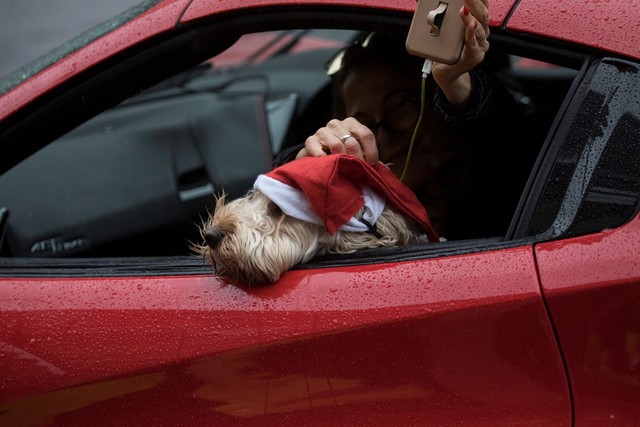 Một con chó đội mũ ông già Noel trên đường Oxford ở London, Anh . Ảnh: Reuters.