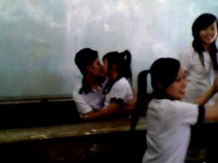 Mới đây nhất là một đoạn clip ghi lại hình ảnh tại một lớp học phổ thông trong giờ ra chơi. Một nam học sinh và một nữ sinh vô tư nằm lên đùi nhau, ôm hôn và sờ soạng trước mặt đám đông bạn bè đang vui đùa ngay sát bên họ.