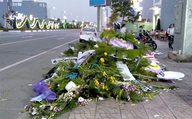 Giật mình với cả trăm vòng hoa viếng đổ đầy đường