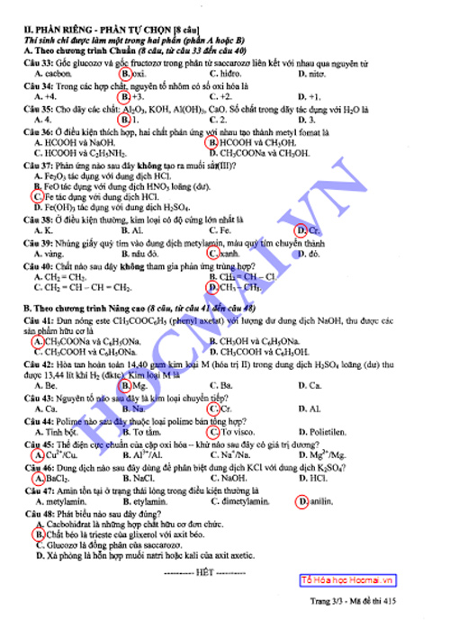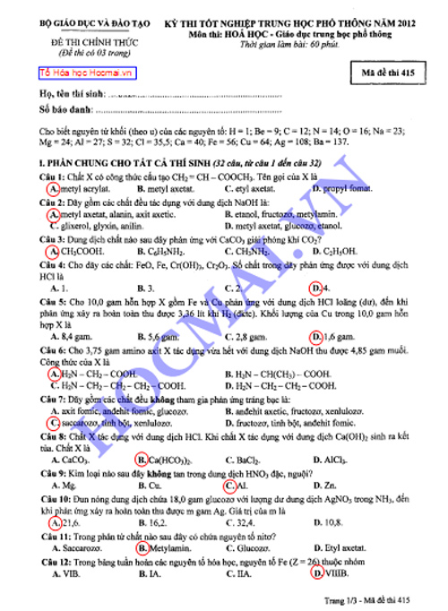 Đề trắc nghiệm môn Hóa chiều 2/6 không "làm khó" thí sinh. Nhiều em tin tưởng sẽ giành điểm giỏi. Dưới đây là đáp án do các giáo viên tổ Hóa Hocmai.vn thực hiện.