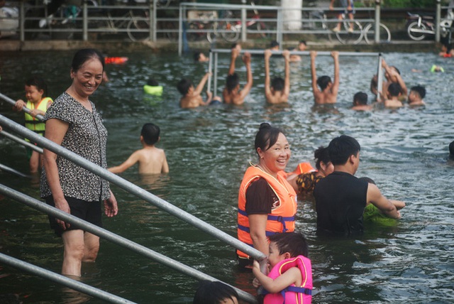 Cũng theo người dân, việc có 1 không gian bơi lội miễn phí đã thu hút hàng vạn người kéo đến. Có những ngày nắng nóng cao điểm tại "bể bơi" miễn phí này đón tiếp cả nghìn người. Như ngày 31/8 vừa qua Hà Nội nắng nóng thì có lúc "bể bơi" có đến 500 người bơi lội cùng 1 lúc.
