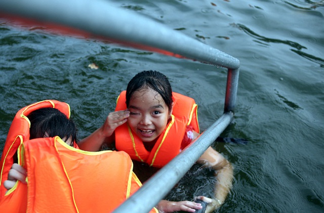 Trao đổi với chúng tôi, chị Thủy - có con đang bơi lội tại đây cho biết: "Cháu nhà tôi mới hơn 5 tuổi đã biết bơi khá tốt, gần như ngày nào bọn trẻ cũng rủ nhau ra đây bơi".