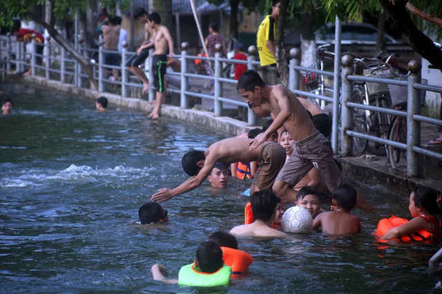 Trẻ nhỏ lên 3 lên 5 đã biết bơi, phụ nữ - người già ngày nào cũng rủ nhau ra tắm mát tại "bể bơi" miễn phí và được cho rằng sạch sẽ hơn tất cả những bể bơi khác tại Hà Nội. Đó là cảnh chúng tôi ghi lại được tại ao làng Thiên (Dương Liễu - Hoài Đức - Hà Nội).