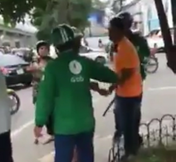 Trong đoạn clip xuất hiện nhiều người đã đứng ra can ngăn. Ngay sau khi sự việc xảy ra, một người đã lớn tiếng nói với nam thanh niên lái xe grap rằng: "Thôi mày đi đi". Còn phía người đàn ông mặc áo cam lớn tiếng chửi rồi nói: "Mày dám tranh khách với tao à?".