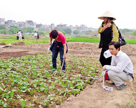Người dân vẫn canh tác bình thường trên mảnh đất được cho là sẽ xây nhà tang lễ. Ảnh: Q.Hưng |