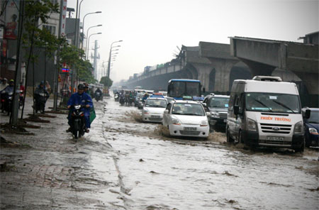Hà Nội ngập sâu sau cơn mưa chuyển mùa